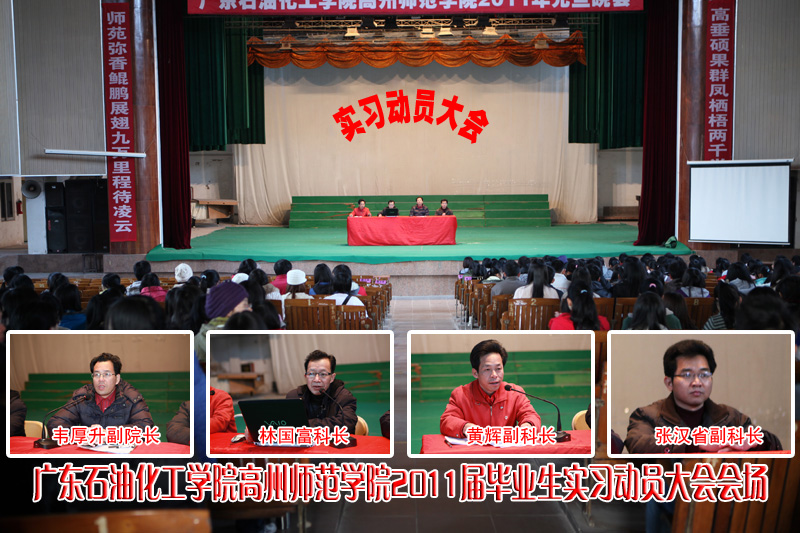 接着,黄辉副科长就2011届毕业生教育实习工作进行了动员。他说,教育实习的目的在于使学生进一步熟悉中小学班主任工作、少先队工作,初步具有独立从事班主任、少先队辅导员工作的能力,在于使学生能正确运用各项教学原则和各种教学方法,基本熟悉本专业科目中小学教学工作的各个环节,掌握课堂教学工作常规,初步具有中小学相应的教学工作能力,在于使学生进一步树立人民教师的光荣感、责任感,立志献身中小学教育事业,进一步提高学生的社会主义觉悟和共产主义道德水平。同时,他还对这次教育实习的任务、注意事项作了明确的要求。