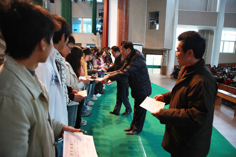 2011年1月12日下午,我校在会堂召开了2011届毕业生教育实习�2010―2011学年学生基本功(三笔字)竞赛颁奖大会。
