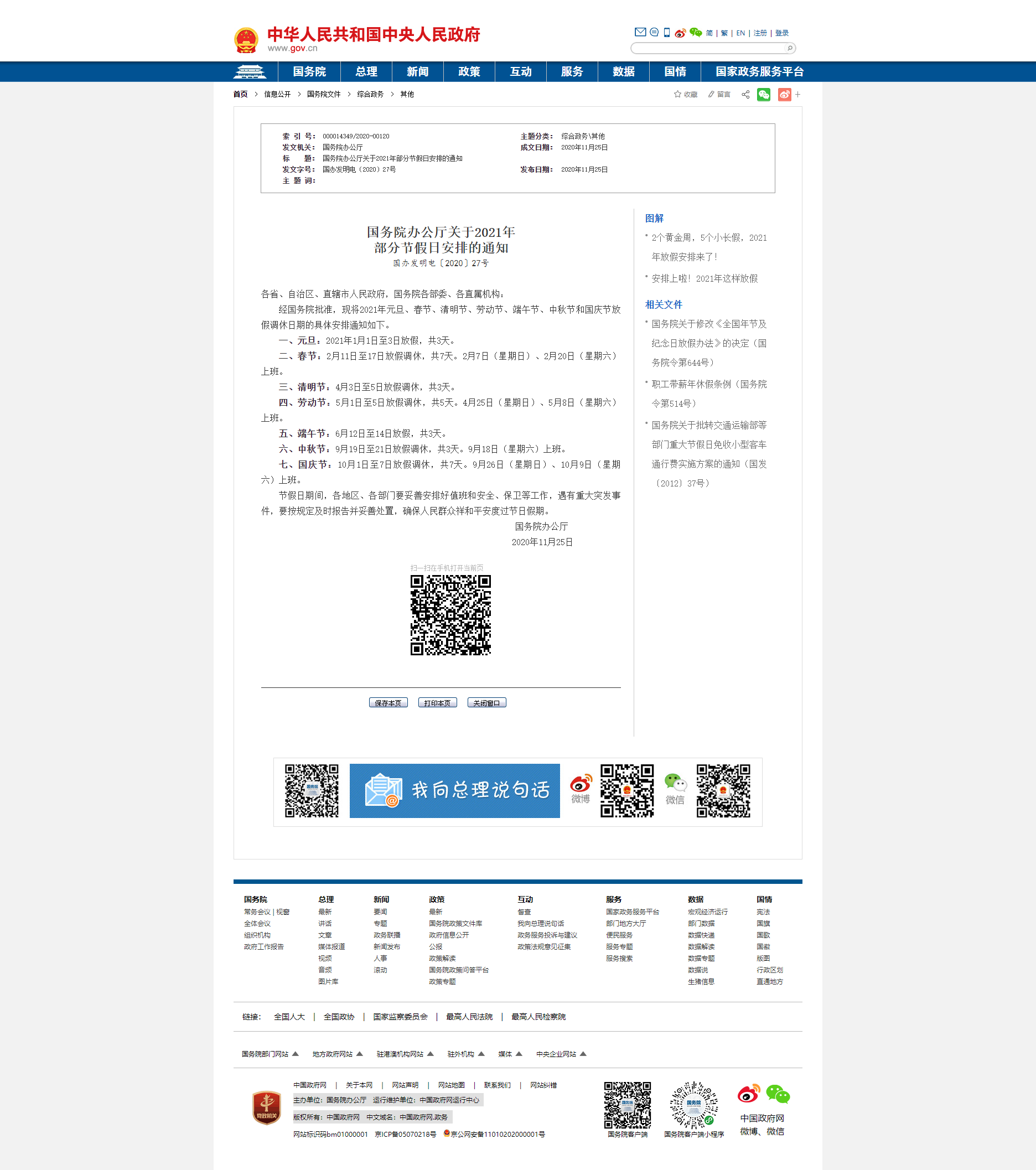 附件3:国务院办公厅关于2021年部分节假日安排的通知(国办发明电〔2020〕27号).png