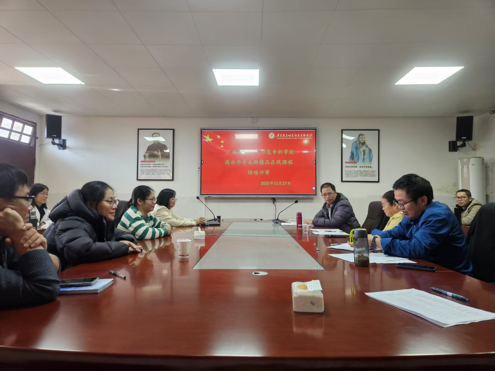 2025年12月27日,我校在高州校区小学教育高水平专业群会议室举行2025年教育教学质量与教学改革工程校级项目暨高水平专业群精品在线课程结项评审会。教务部组织校内专家组成评审组,对收到的37个项目进行现场验收。